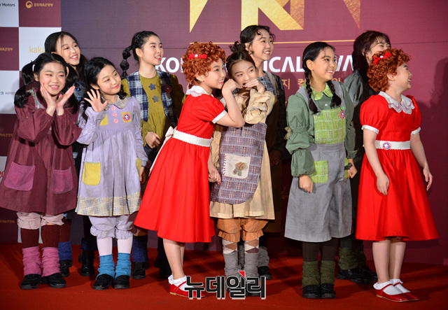 뮤지컬 '애니' 아역배우이 14일 오후 서울 용산구 블루스퀘어에서 '제3회 한국뮤지컬어워즈(KOREA MUSICAL AWARDS)' 레드카펫 행사에 참석해 포토타임을 갖고 있다.