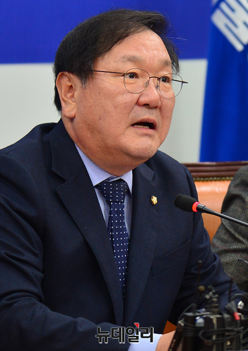 김태년 더불어민주당 정책위의장이 15일 오전 국회에서 열린 원내대책회의에서 모두발언을 하고 있다.