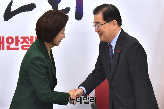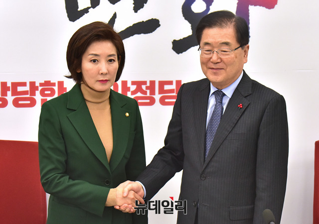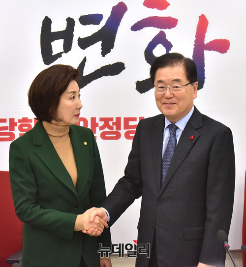 [포토] 악수 나누는 나경원 원내대표와 정의용 안보실장