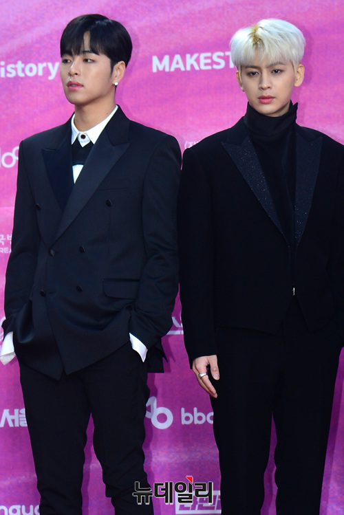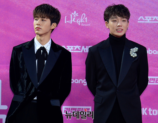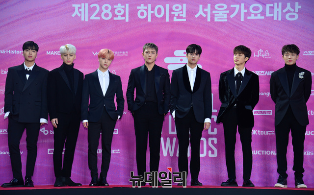 아이돌그룹 아이콘이 15일 오후 서울 구로구 고척스카이돔에서 열린 ‘제28회 하이원 서울가요대상(SEOUL MUSIC AWARDS)’ 레드카펫 행사에서 포토타임을 갖고 있다.