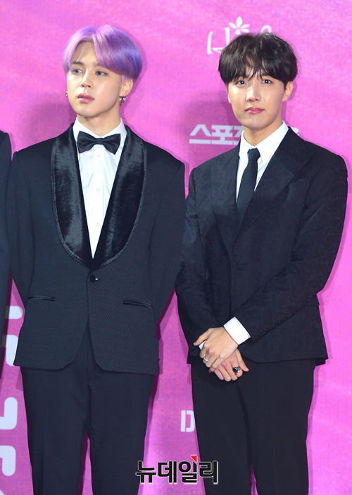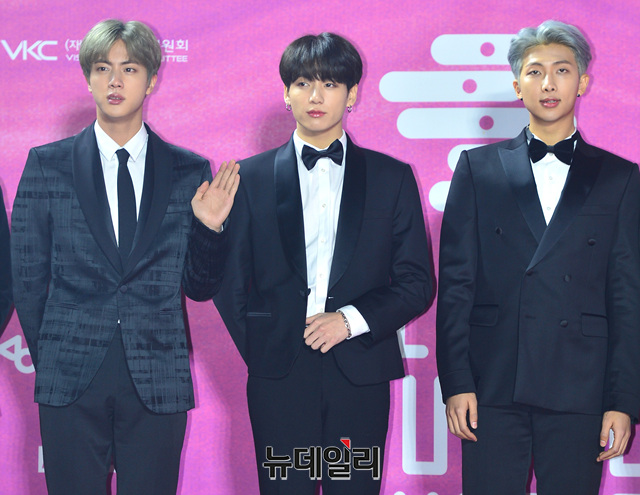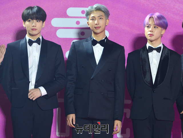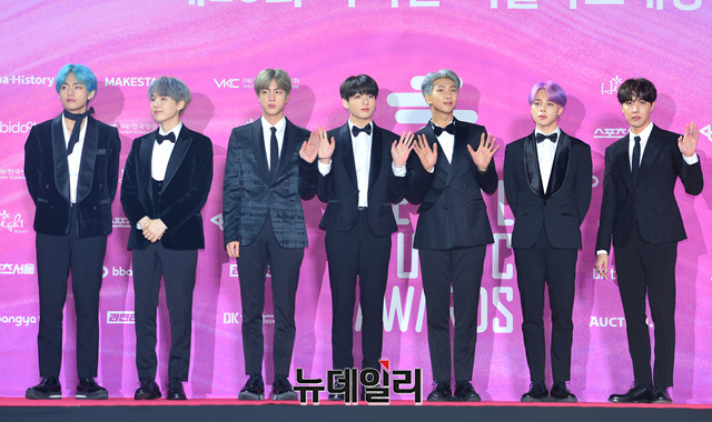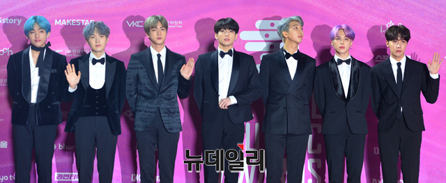 방탄소년단(BTS)이 15일 오후 서울 구로구 고척스카이돔에서 열린 ‘제28회 하이원 서울가요대상(SEOUL MUSIC AWARDS)’ 레드카펫 행사에서 포토타임을 갖고 있다.