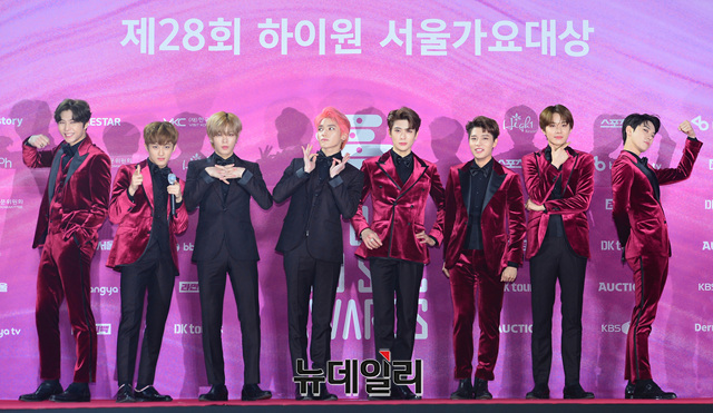 아이돌그룹 NCT127가 15일 오후 서울 구로구 고척스카이돔에서 열린 ‘제28회 하이원 서울가요대상(SEOUL MUSIC AWARDS)’ 레드카펫 행사에서 포토타임을 갖고 있다.