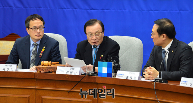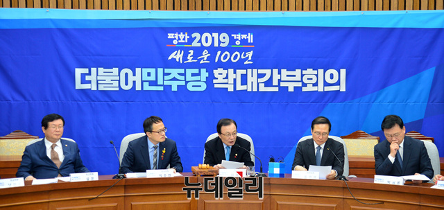 이해찬 더불어민주당 대표가 16일 오전 국회에서 열린 확대간부회의에서 모두발언을 하고 있다.