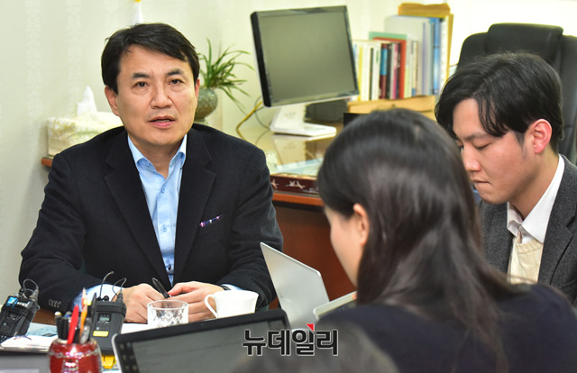김진태 자유한국당 의원이 16일 오전 국회 의원회관 의원실에서 기자간담회를 갖고 황교안 전 총리 입당 및 전당대회 관련 입장을 밝히고 있다.