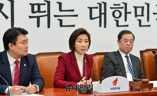 나경원 자유한국당 원내대표가 17일 오전 국회에서 열린 원내대책회의에서 모두발언을 하고 있다.
