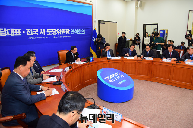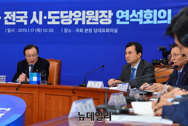 이해찬 더불어민주당 대표가 17일 오전 국회에서 열린 시도당위원장 연석회의에서 모두발언을 하고 있다.