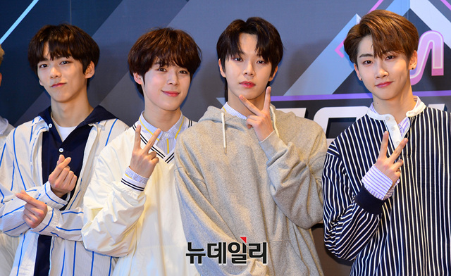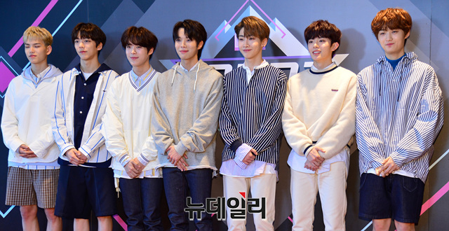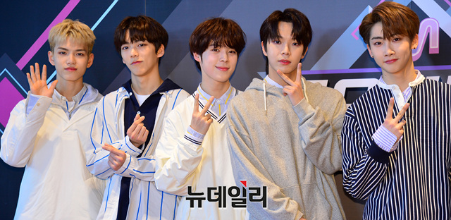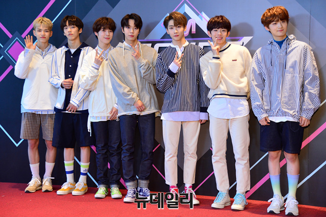 아이돌그룹 베리베리가 17일 오후 서울 마포구 CJ E&M센터에서 열리는 엠카운트다운 생방송에 입장하며 포토타임을 갖고 있다.