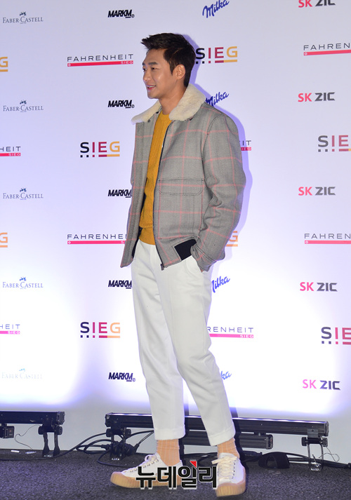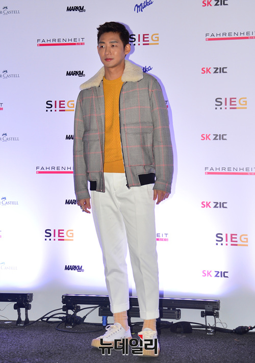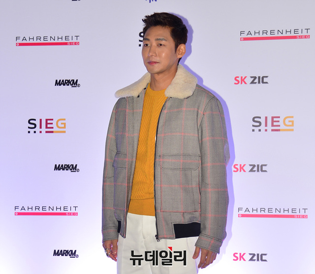 이재윤이 17일 오후 서울 성동구 PIER59 STUDIOS에서 열린 '지이크(SIEG)&지이크 파렌하이트(SIEG FAHRENHEIT)' 리뉴얼 행사에 참석해 포토타임을 갖고 있다.
