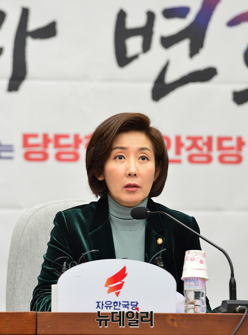 나경원 자유한국당 원내대표가 18일 오전 국회에서 열린 원내대책회의에서 모두발언을 하고 있다.