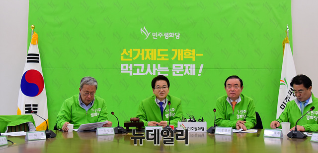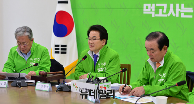 정동영 민주평화당 대표가 18일 오전 국회에서 열린연석회의에서 모두발언을 하고 있다.