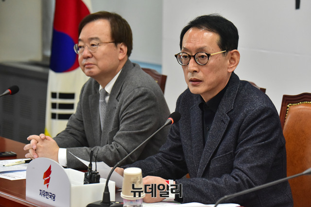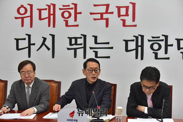 김도읍 자유한국당 청와대 특감반 진상조사단장이 18일 오전 국회에서 열린 '청와대 특별감찰반 진상조사단 회의'에서 발언을 하고 있다.