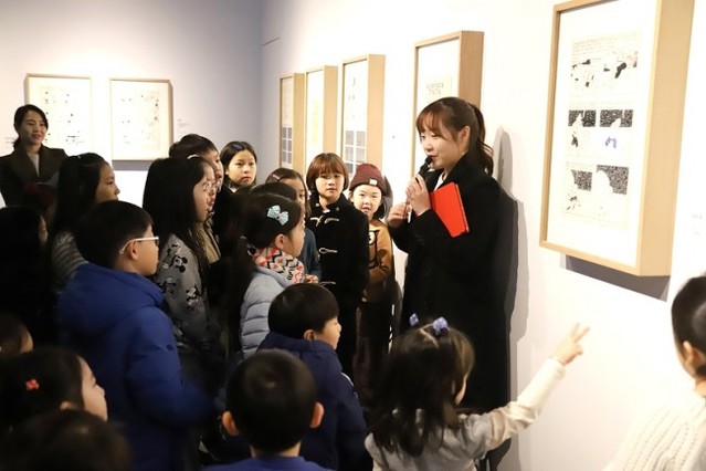 땡땡(Tintin) 탄생 90주년 대규모 회고전 '에르제: 땡땡전'이 겨울 방학을 맞아 어린이 전용 도슨트 코너가 인기를 얻고 있다.'도슨트(docent)'란 박물관이나 미술관 등에서 일반 관람객들에게 전시물에 대한 설명을 제공함으로써 이해를 돕는 전문 안내인을 말한다.'에르제: 땡땡전'의 도슨트 시간은 오전 11시 30분, 오후 1·3·5시 하루 총 4회로 진행되며, 오전은 어린이 전용 도슨트로 운영 중이다. 1월 1일부터 시작한 어린이 도슨트 시간대에는 평일에도 평균 40~50명이 참여하고 있다.성인들을 위한 도슨트와 가장 큰 차이점은 어린이들이 쉽고 흥미롭게 작품을 이해하고 관람할 수 있도록 '땡땡의 모험' 만화책과 캐릭터를 중점적으로 소개한다. 또 다양한 시각자료를 활용하고, 아이들의 눈높이에 맞는 친숙한 용어들을 사용하고 있다.