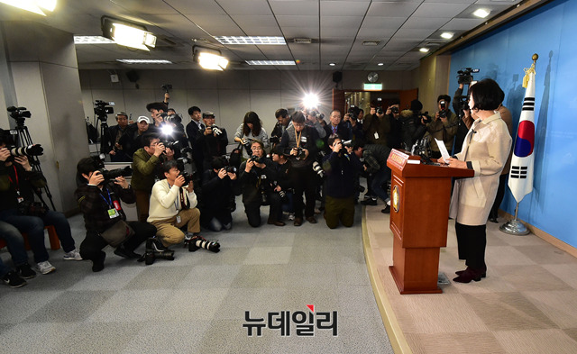 목포 문화재거리 부동산 투기 의혹을 받고 있는 손혜원 더불어민주당 의원이 20일 오전 국회 정론관에서 기자회견을 갖고 탈당 및 문화관광위원회 위원직 사퇴 기자회견을 갖고 있다.