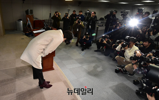 목포 문화재거리 부동산 투기 의혹을 받고 있는 손혜원 더불어민주당 의원이 20일 오전 국회 정론관에서 열린 기자회견을 마치고 인사하고 있다.