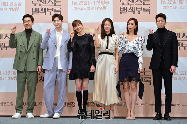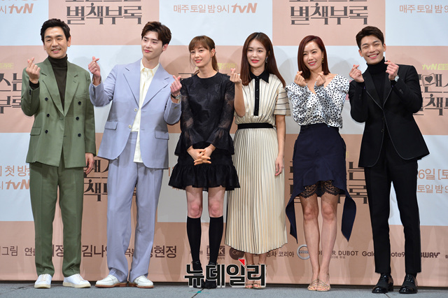 배우 김태우, 이종석, 이나영, 정유진, 김유미, 위하준이 21일 오후 서울 강남구 임피리얼팰리스 호텔에서 열린 '로맨스는 별책부록' 제작발표회에서 포토타임을 갖고 있다.