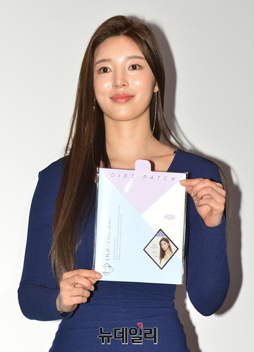 모델 겸 CEO 유승옥이 21일 오후 서울 강남구 CGV청담시네시티에서 열린 '유승옥의 바디메모' 쇼케이스에서 제품 홍보를 하고 있다. '유승옥의 바디메모'는 유승옥이 기획하고, 연구해 지난해 6월에 런칭한 다이어트 코스메틱이다.