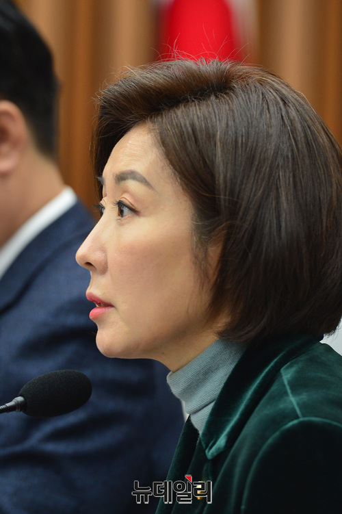 나경원 자유한국당 원내대표가 22일 오전 국회에서 열린 원내대책회의에서 모두발언을 하고 있다.