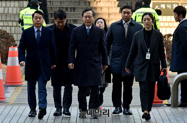 박병대 전 대법관이 23일 오전 서울 서초구 서울중앙지법에 열린 영장실질심사를 받기 위해 입장하고 있다.