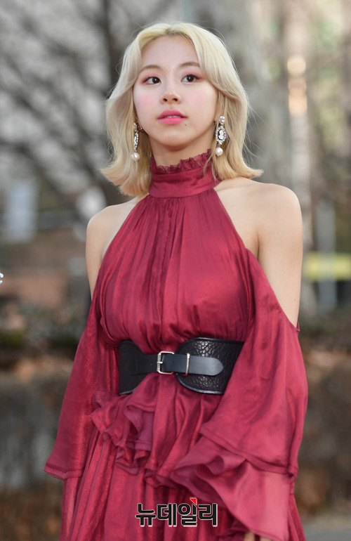 트와이스 채영이 23일 오후 서울 송파구 잠실 실내체육관에서 열린 '제8회 가온차트 뮤직 어워즈' 레드카펫 행사에서 입장하고 있다.'가온차트 뮤직 어워즈'는 가온차트에서 집계한 데이터를 바탕으로 2018년 한 해 동안 활약한 음반(디지털 음원, 오프라인 앨범)과 아티스트에게 상을 수여한다. 올해는 팬덤간 과열 경쟁을 부추겨온 '팬 투표 인기상'을 폐지하고, 암표 발생을 최소화하기 위해 온라인 선예매 응모제를 도입했다.오후 7시부터 엠넷, 네이버 V LIVE, 일본은 U-NEXT를 통해 생중계 된다.