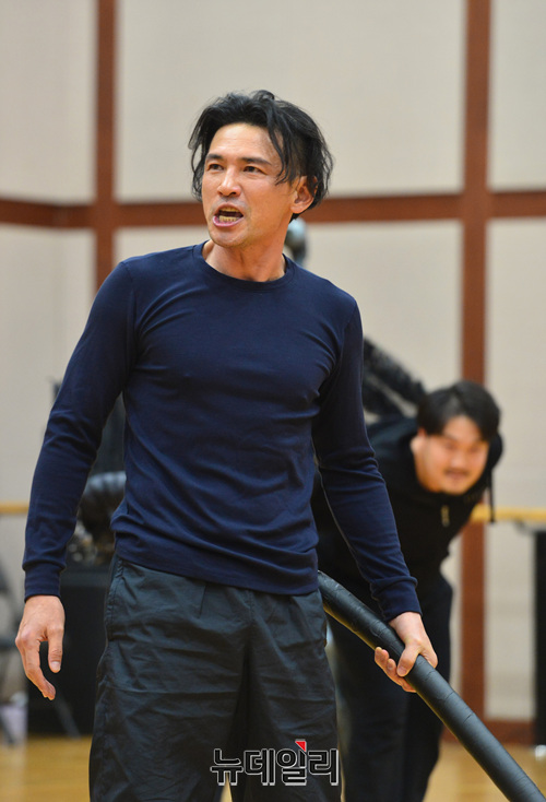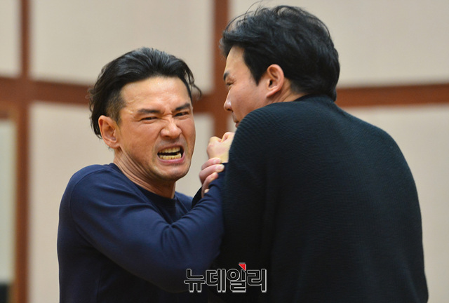 배우 황정민이 24일 오후 서울 서초구 예술의 전당 오페라연습실에서 열린 연극 '오이디푸스' 연습실 공개 행사에서 열연하고 있다.