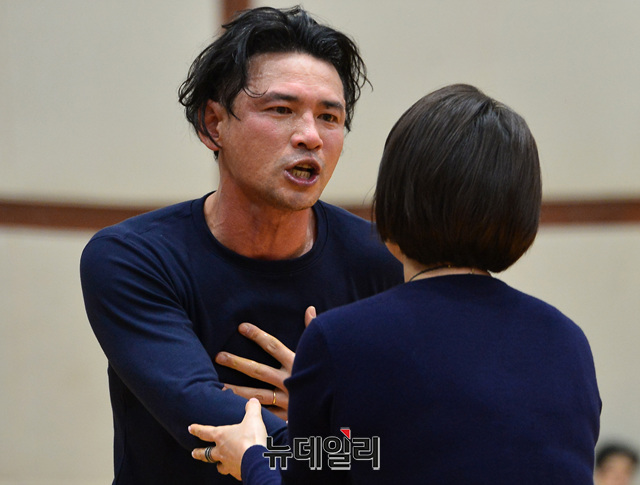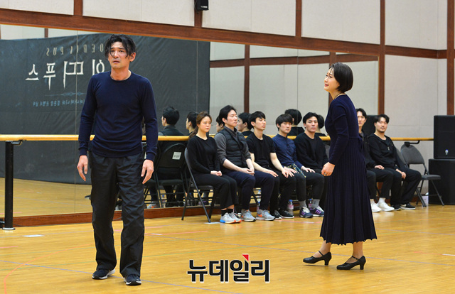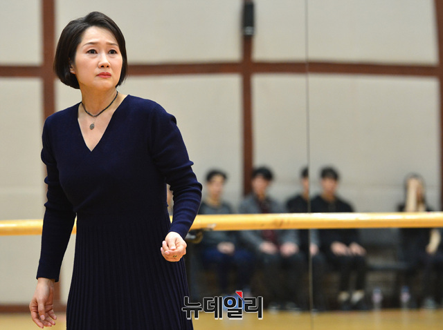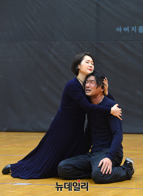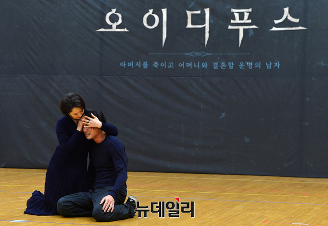 배우 배해선이 24일 오후 서울 서초구 예술의 전당 오페라연습실에서 열린 연극 '오이디푸스' 연습실 공개행사에서 연기를 하고 있다. 배해선은 오이디푸스의 어머니이자 부인인 이오카스테 역을 맡았다.
