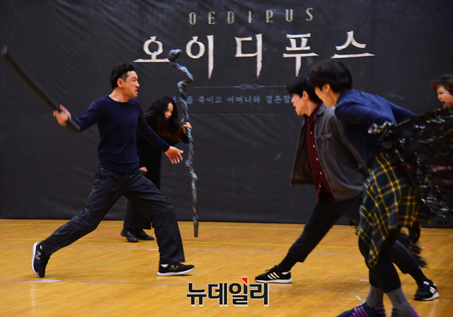 연극 '오이디푸스'는 아버지를 죽이고 왕이 되어 어머니와 결혼할 운명의 남자 오이디푸스(황정민 역)의 이야기다. 29일부터 2월 24일까지 CJ토월극장에서 공연된다.