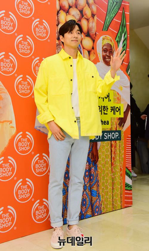 배우 공유가 25일 오전 서울 마포구 'THE BODY SHOP(더바디샵)' 팝업 스토어에서 열린 '시어버터 DIY 스튜디오' 오픈 행사에서 포토타임을 갖고 있다.