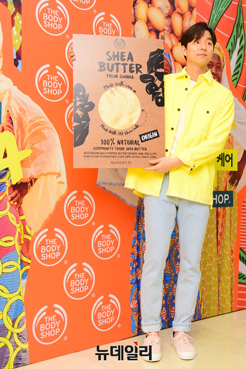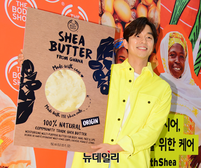 배우 공유가 25일 오전 서울 마포구 'THE BODY SHOP(더바디샵)' 팝업 스토어에서 열린 '시어버터 DIY 스튜디오' 오픈 행사에서 판넬을 들고 포토타임을 갖고 있다.
