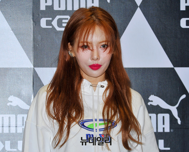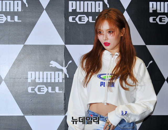 가수 현아가 25일 오후 서울 용산구 디프로젝트 스페이스 구슬모아당구장에서 열린 '푸마, 셀 스튜디오 오픈' 기념행사에서 포즈를 취하고 있다.