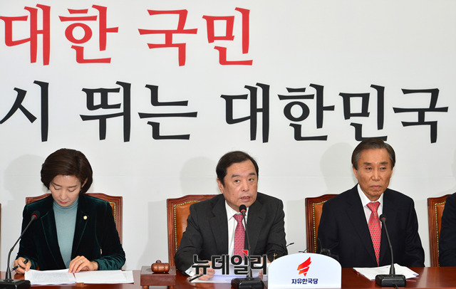 김병준 자유한국당 비상대책위원장이 28일 오전 국회에서 열린 비상대책위원회 회의에서 모두발언을 하고 있다.