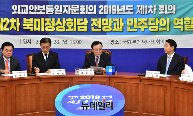 이해찬 더불어민주당 대표가 28일 오후 국회 당대표실에서 열린 외교안보통일자문회의에서 모두발언을 하고 있다.