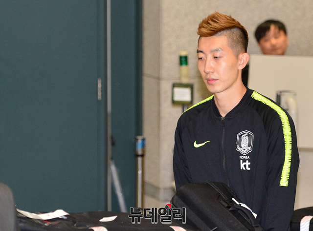 축구선수 조현우가 28일 오후 두바이를 출발해 인천국제공항으로 입국하고 있다.