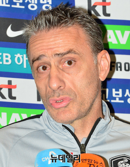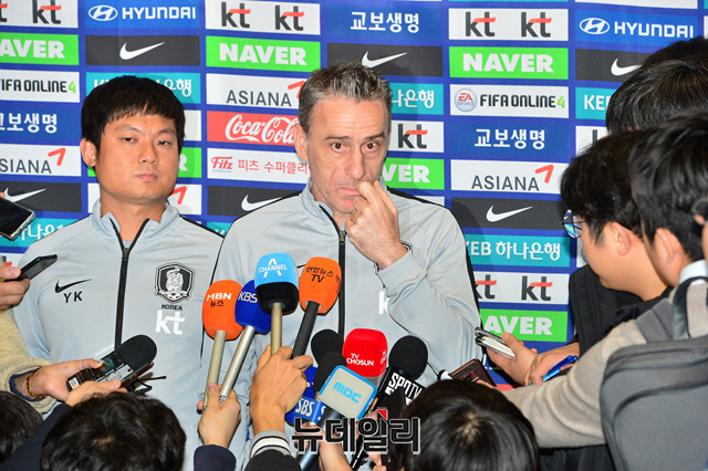 '파울루 벤투 (Paulo Jorge Gomes Bento)' 축구 국가대표팀 감독이 28일 오후 두바이를 출발해 인천국제공항으로 입국해 인터뷰를 하고 있다.