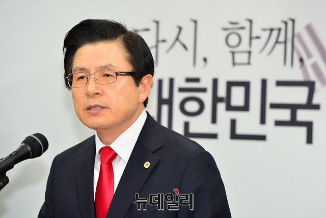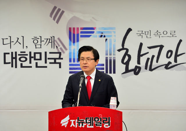 황교안 전 국무총리가 29일 오전 서울 영등포구 자유한국당사에서 당대표 출마선언을 하고 있다.