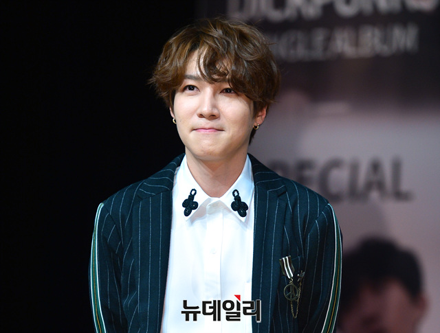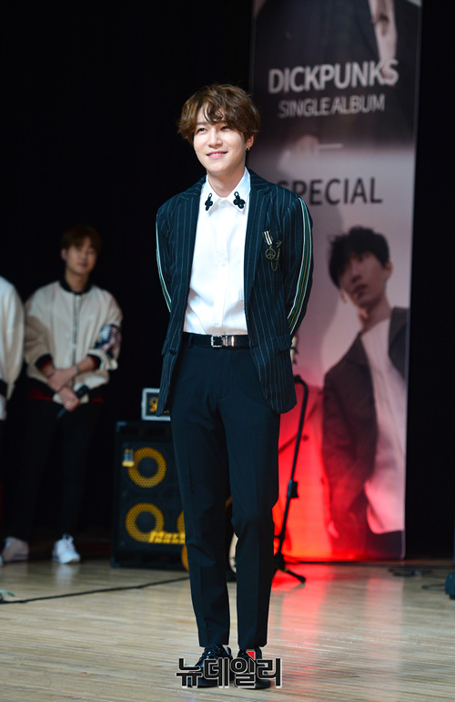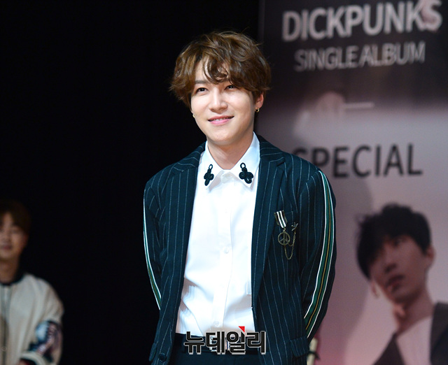 딕펑스의 보컬 김태현이 29일 오후 서울 강남구 일지아트홀에서 열린 싱글 앨범 'SPECIAL(스페셜)' 쇼케이스에서 포토타임을 갖고 있다.