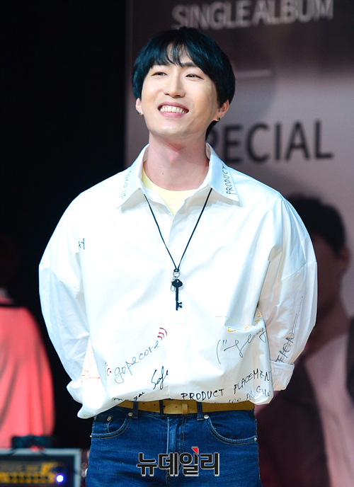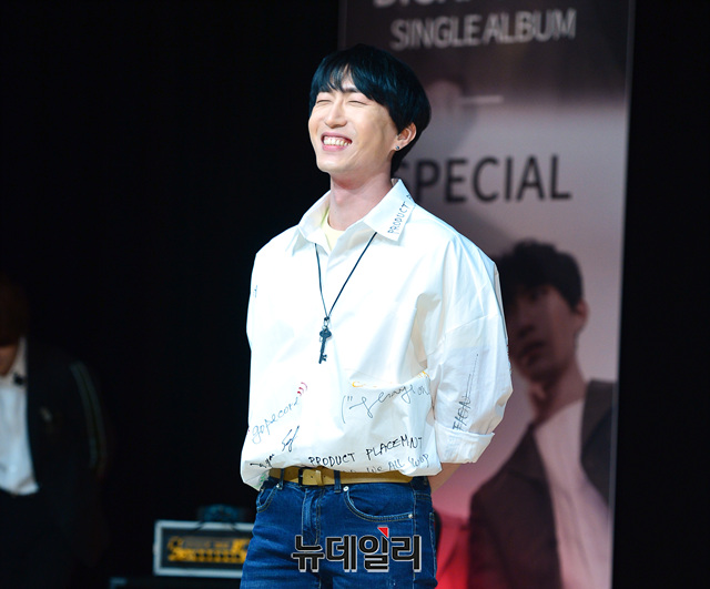 딕펑스 드러머 박가람이 29일 오후 서울 강남구 일지아트홀에서 열린 싱글 앨범 'SPECIAL(스페셜)' 쇼케이스에서 포토타임을 갖고 있다.