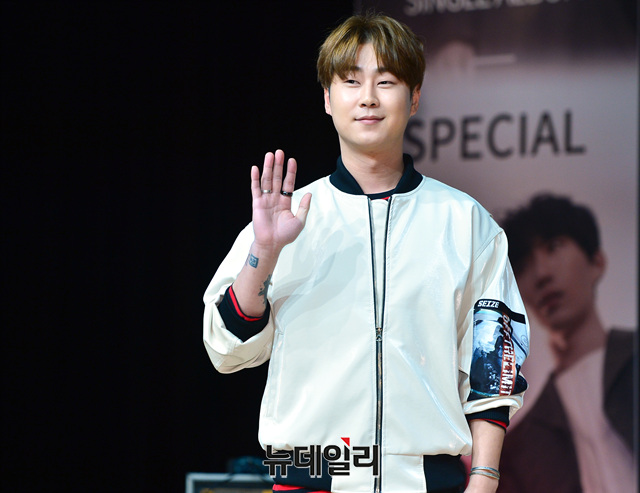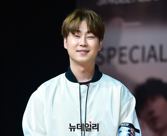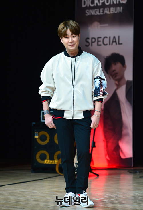 딕펑스 베이시스트 김재흥이 29일 오후 서울 강남구 일지아트홀에서 열린 싱글 앨범 'SPECIAL(스페셜)' 쇼케이스에서 포토타임을 갖고 있다.