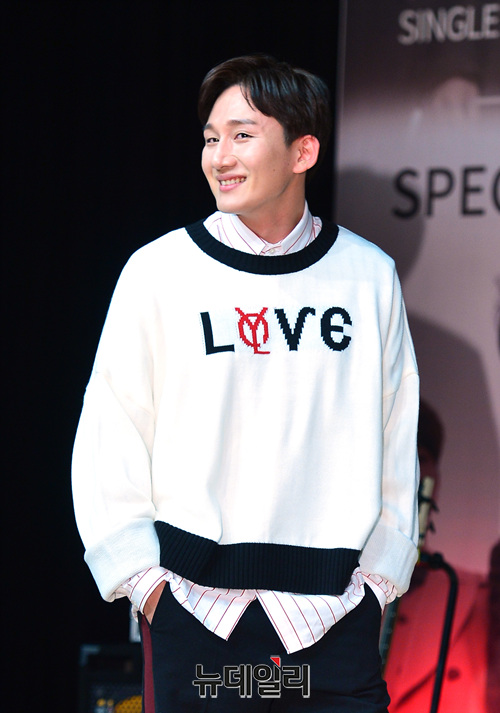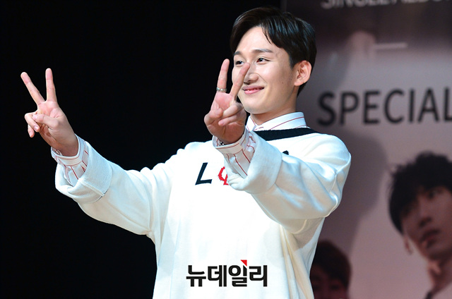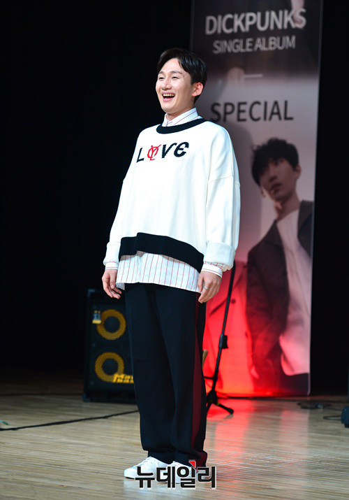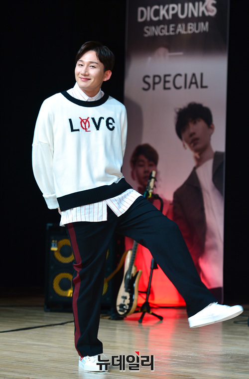 딕펑스 키보더 김현우가 29일 오후 서울 강남구 일지아트홀에서 열린 싱글 앨범 'SPECIAL(스페셜)' 발매 기념 쇼케이스에서 포토타임을 갖고 있다.