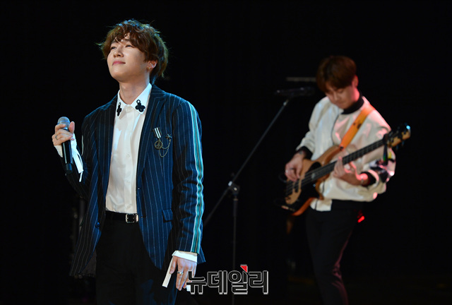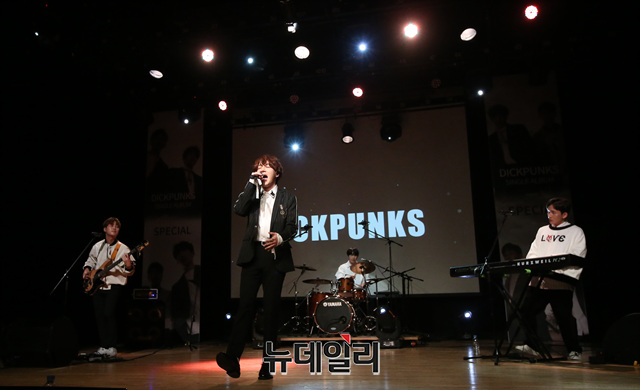밴드 딕펑스가 29일 오후 서울 강남구 일지아트홀에서 열린 싱글 앨범 'SPECIAL(스페셜)' 발매 기념 쇼케이스에서 수록곡 무대를 선보이고 있다.