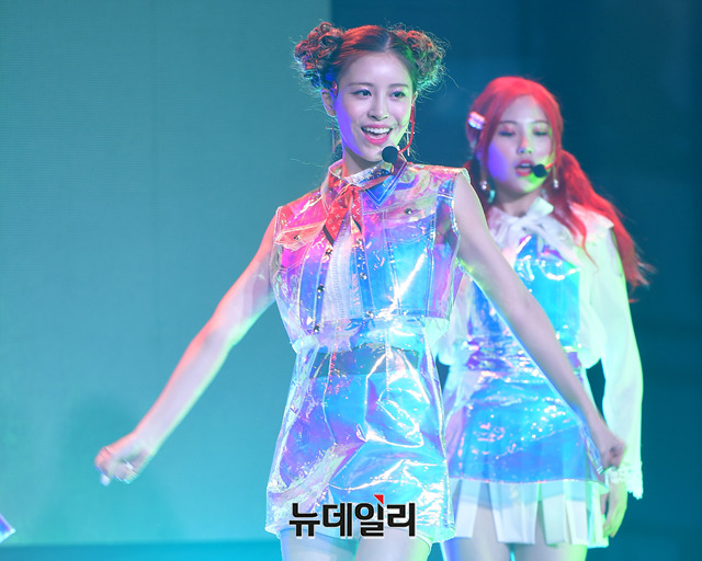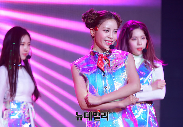 걸그룹 '네온펀치(NEON PUNCH)' 멤버 이안이 30일 오전 서울 마포구 무브홀에서 열린 2번째 미니앨범 'Watch Out(와치 아웃)' 쇼케이스에서 수록곡 무대를 선보이고 있다.