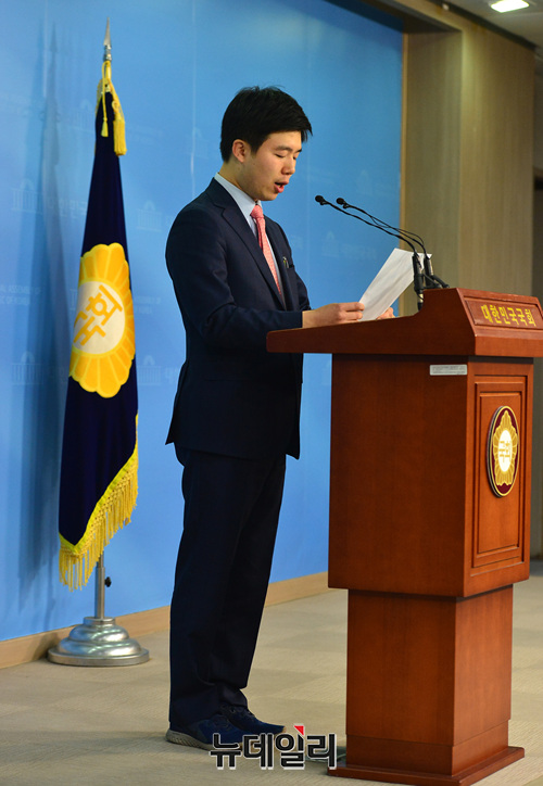 장능인 자유한국당 비상대책위원회 대변인이 30일 오전 국회 정론관에서 김현철 전 청와대 경제보좌관의 논란과 관련해 "사퇴하는 것으로 다 해결되는 것이 아니며, 국민에 대한 빚을 청산해야 한다"고 말했다.