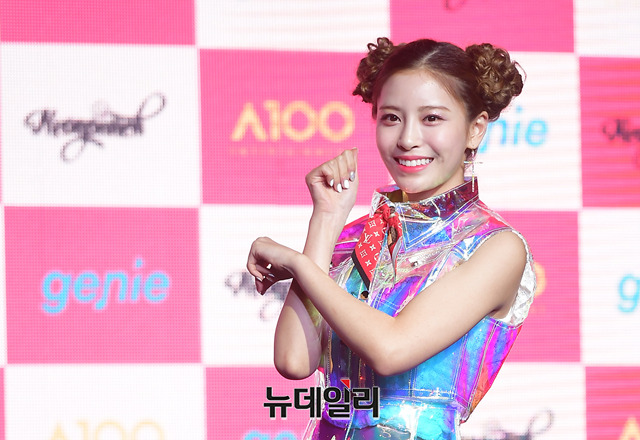 걸그룹 '네온펀치(NEON PUNCH)' 이안이 30일 오전 서울 마포구 무브홀에서 2번째 미니앨범 'Watch Out(와치 아웃)' 쇼케이스에서 포토타임을 갖고 있다.