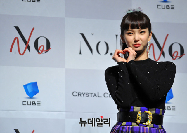 걸그룹 CLC 최유진이 30일 오후 서울 용산구 블루스퀘어 아이마켓 홀에서 열린 '씨엘씨(CLC)' 여덟 번째 미니앨범 'No.1(노 원)' 쇼케이스에 참석해 포토타임을 갖고 있다.