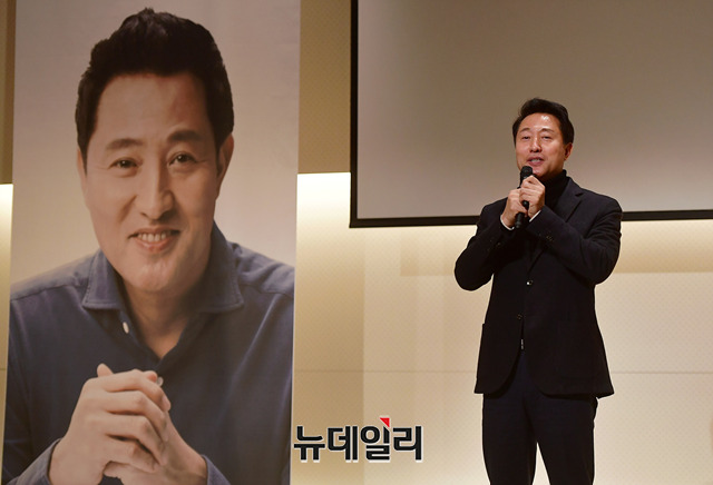 오세훈 전 서울시장이 31일 오후 서울 중구 페럼타워 페럼홀에서 열린 출판기념회에서 북콘서트를 진행하고 있다. 오 전 시장은 앞서 취재진들과 만난 자리에서 당대표 출마에 관한 질문에 즉답을 피했다.