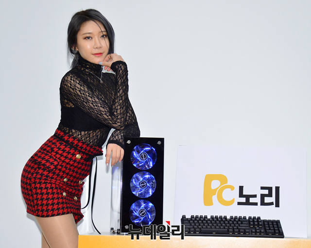 남성잡지 맥심 모델 정주희가 31일 오후 서울 용산구 여행박사 본사에서 열린 'PC노리 리뉴올' 쇼케이스에 참석해 포토타임을 갖고 있다.
