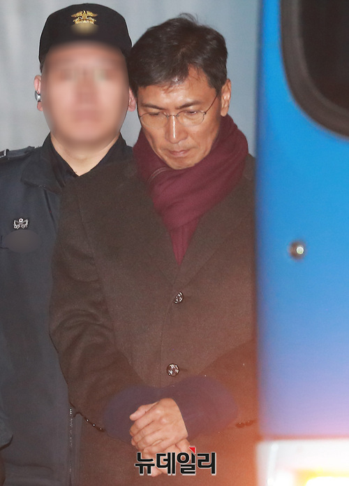수행비서 성폭행 관련 혐의로 기소된 안희정 전 충남지사가 1일 오후 서울 서초구 서울중앙지법에서 열린 2심에서 징역 3년 6개월을 선고받고 구치소로 이동하기 위해 호송타로 이동하고 있다.
