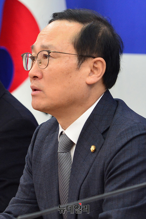 홍영표 더불어민주당 원내대표가 7일 오전 국회 원내대표회의실에서 열린 정책조정회의에서 모두발언을 하고 있다.