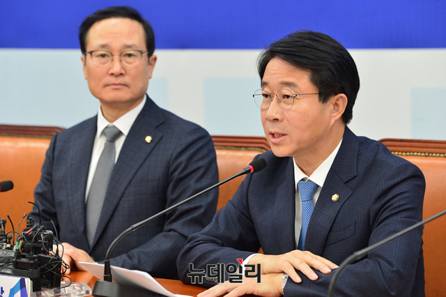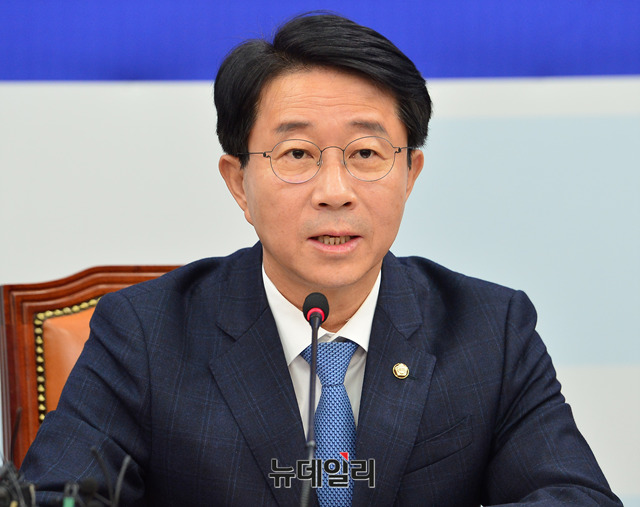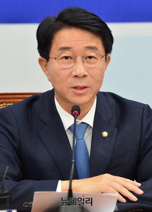 조정식 더불어민주당 정책위의장이 7일 오전 국회 원내대표회의실에서 열린 정책조정회의에서 모두발언을 하고 있다.