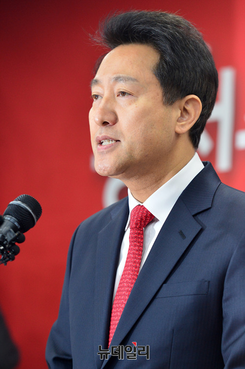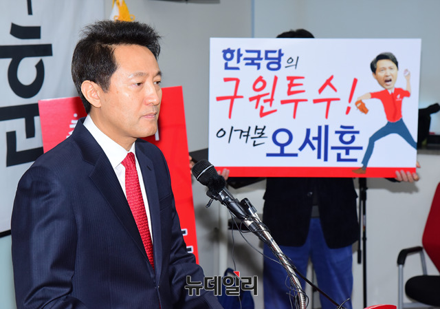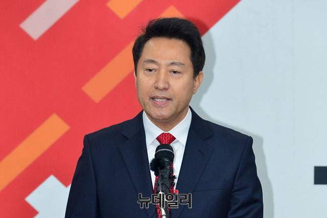 오세훈 전 서울시장이 7일 오전 서울 영등포구 자유한국당 중앙당사에서 당 대표 출마선언을 하고 있다.