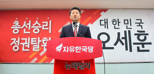 [포토] 한국당대표 출마선언하는 오세훈 전 시장